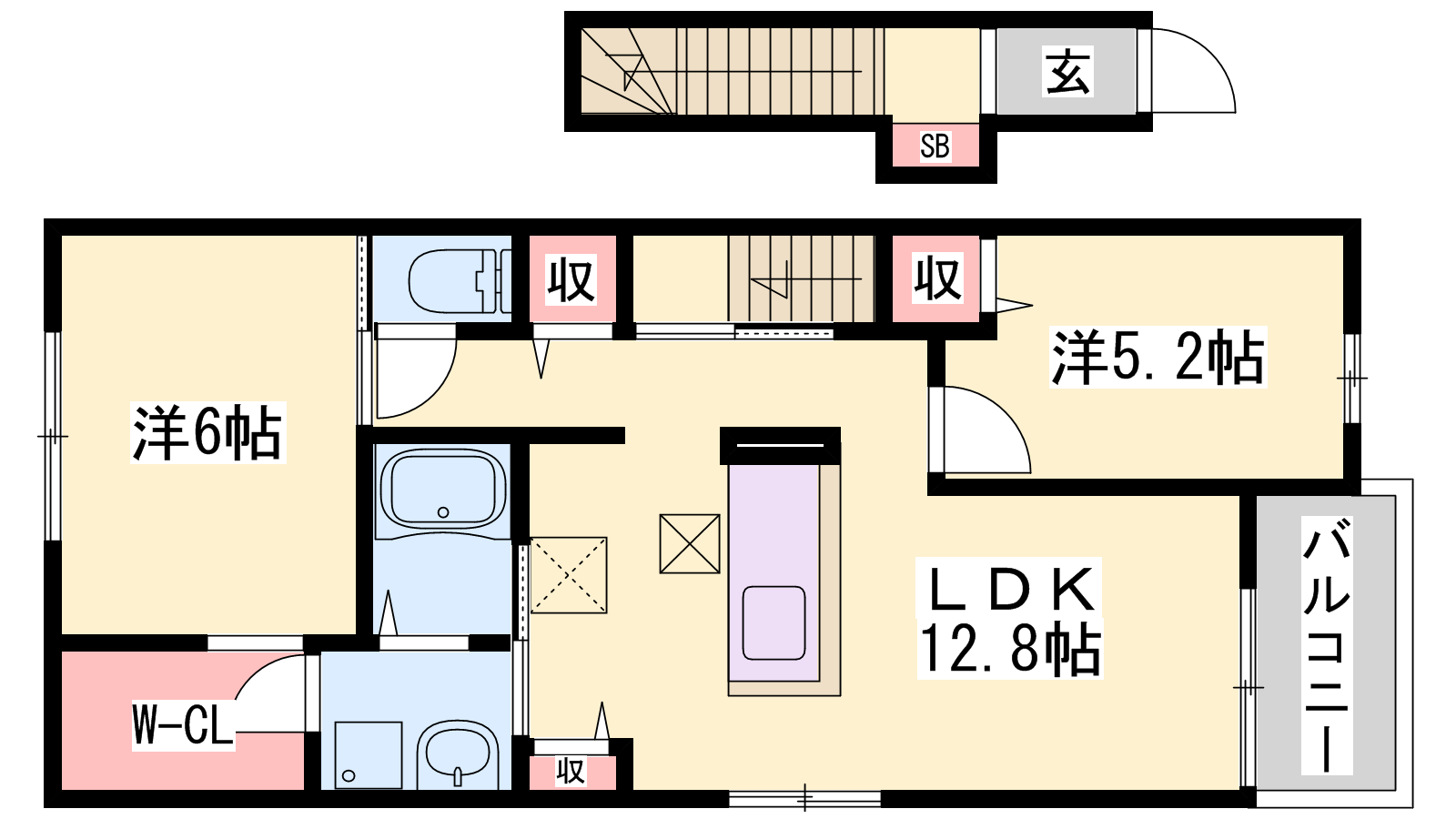 - LDK12.8帖、洋室6帖、洋室5.2帖