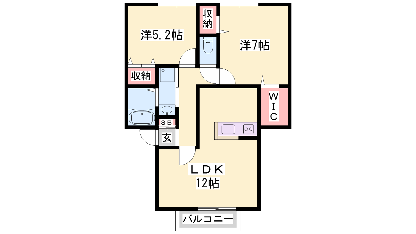 - LDK12帖、洋室7帖、洋室5.2帖