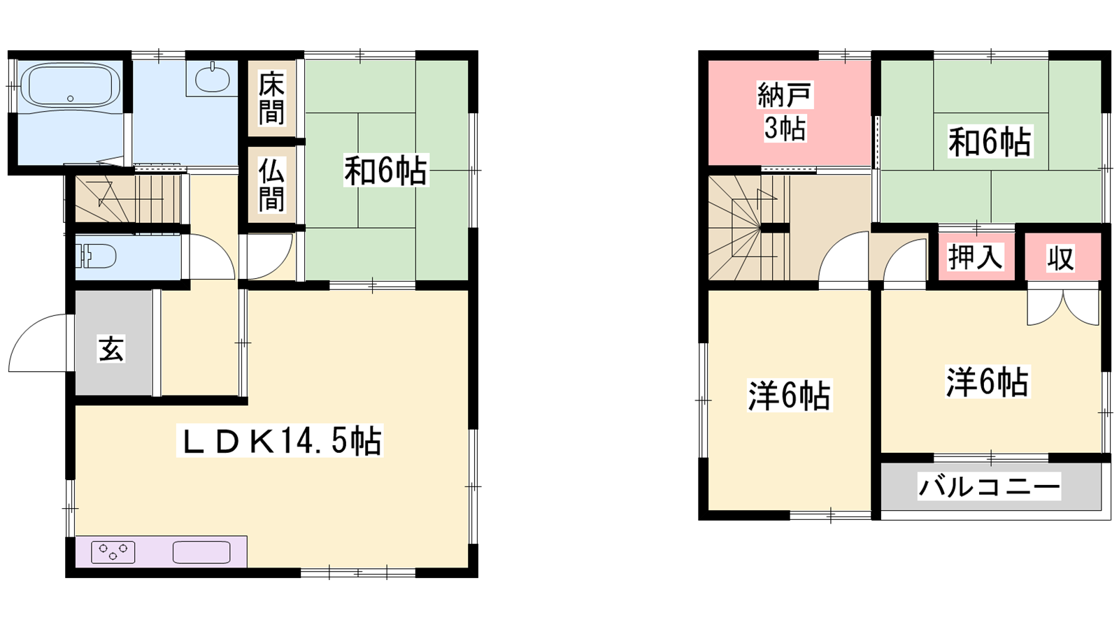- LDK14.5帖、和室6帖、洋室6帖、洋室6帖、和室6帖、S3帖