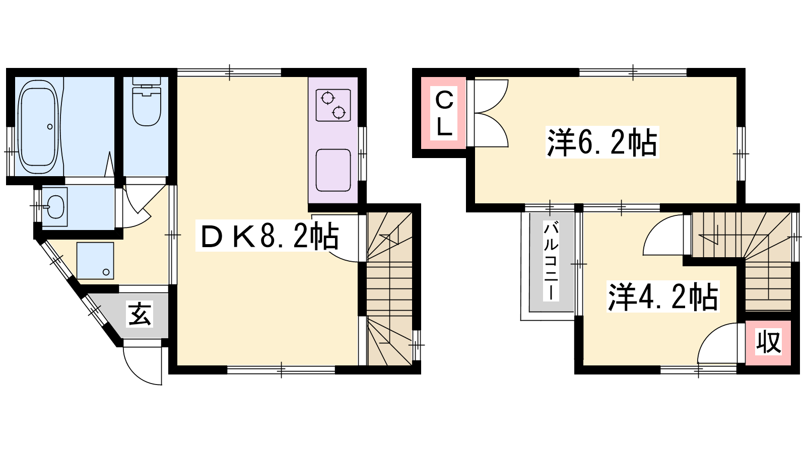 - DK8.2帖、洋室6.2帖、洋室4.2帖