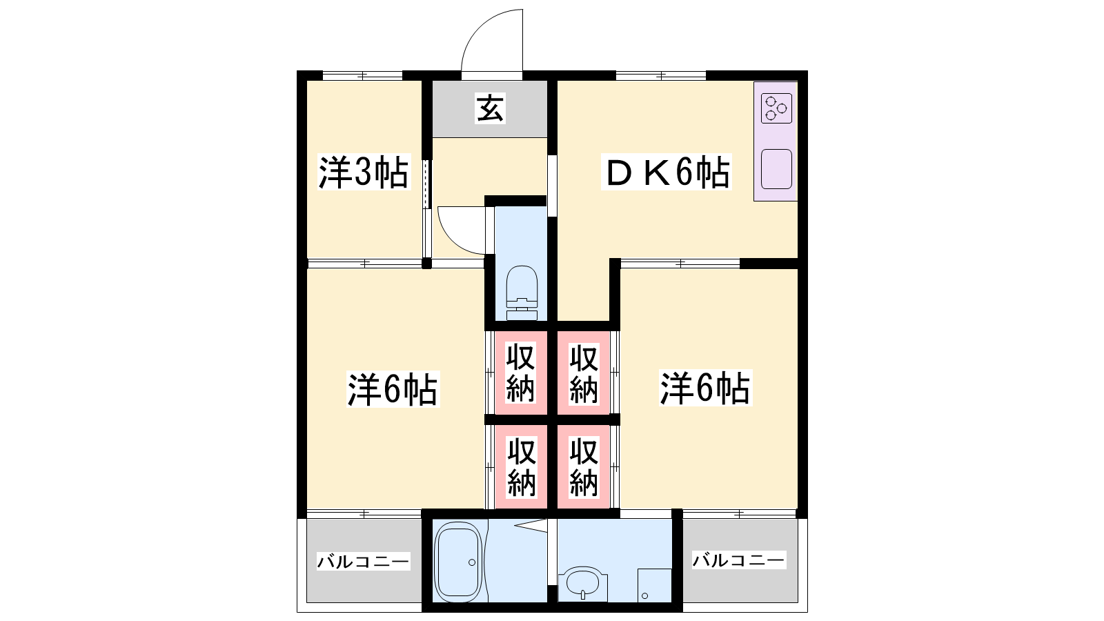 - DK6帖、洋室6帖、洋室6帖、洋室3帖