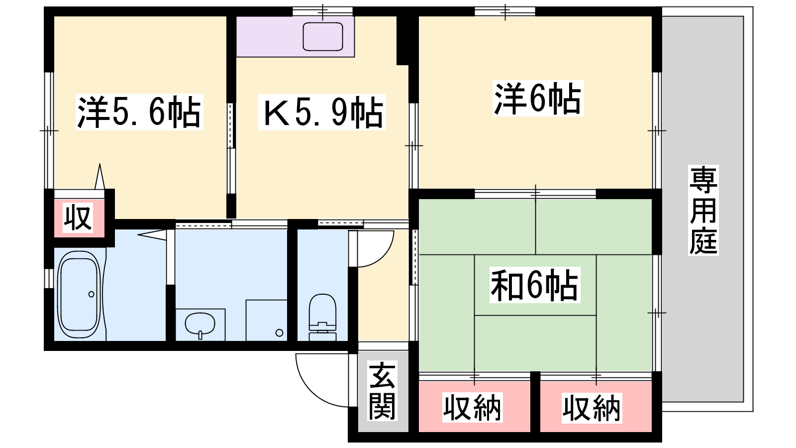 - K5.9帖、洋室5.6帖、洋室6帖、和室6帖