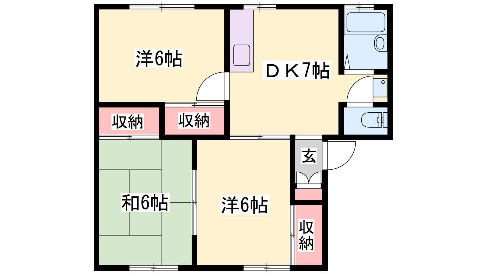 - DK7帖、洋室6帖、洋室6帖、和室6帖