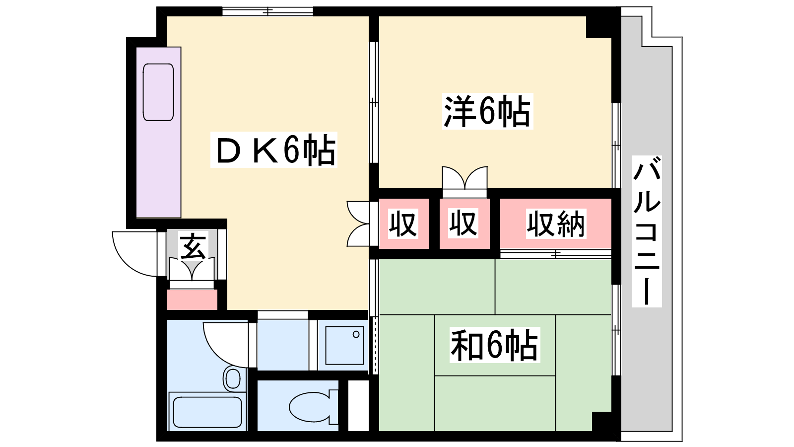 - DK6帖、洋室6帖、洋室6帖