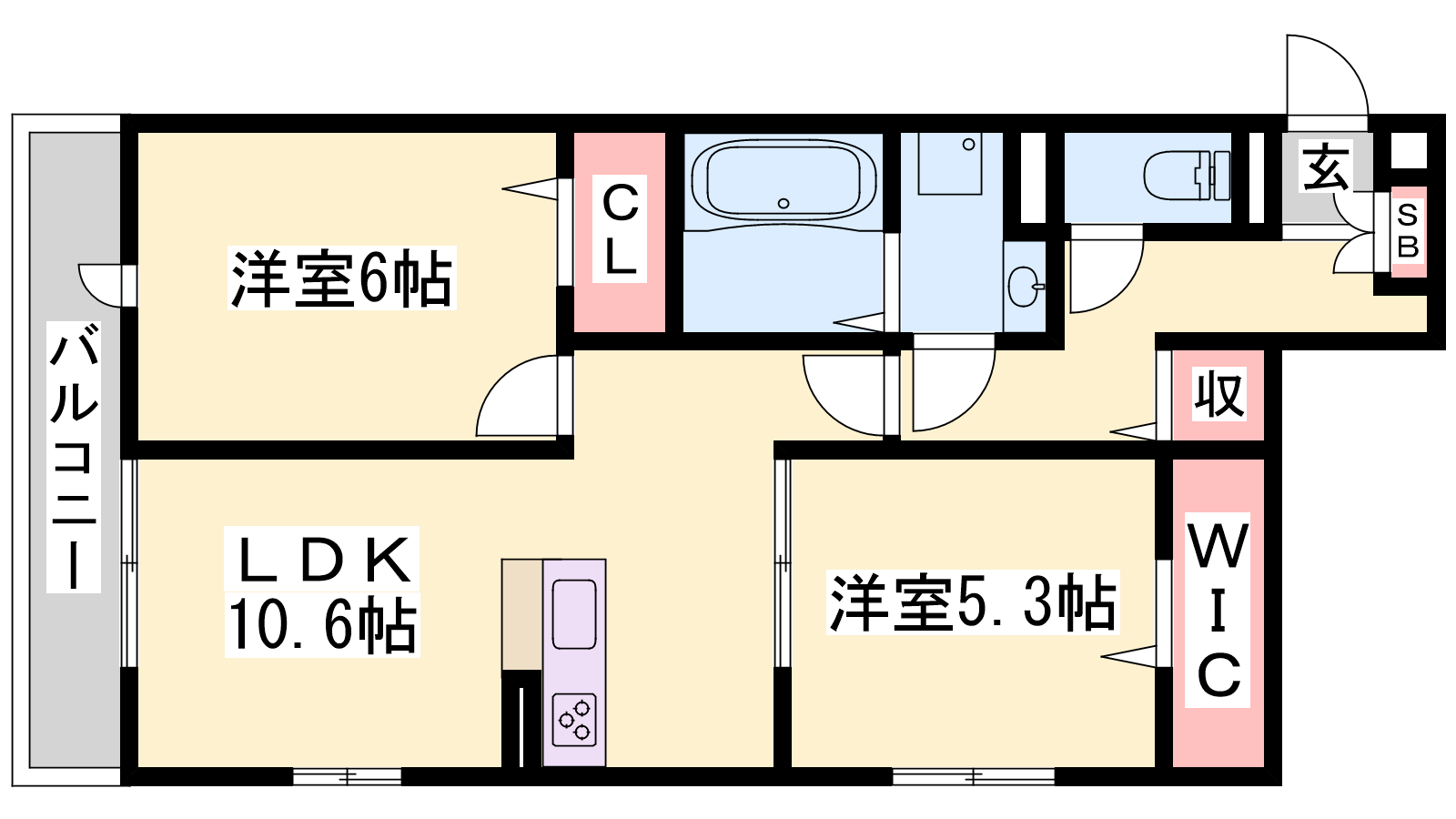 - LDK10.6帖、洋室6帖、洋室5.3帖
