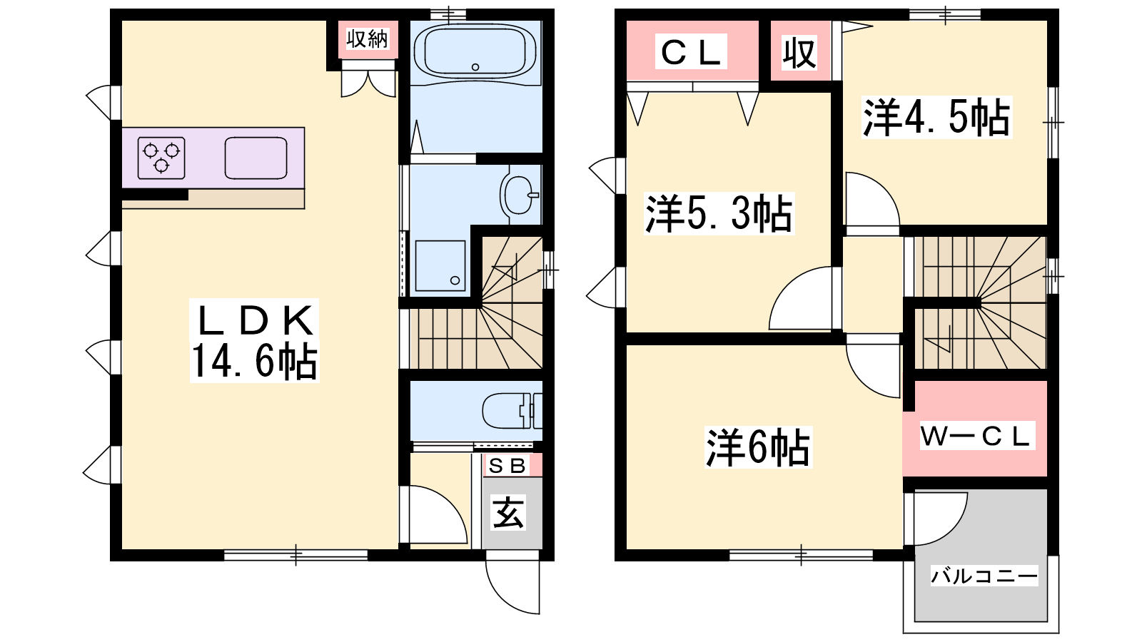 - LDK14.6帖、洋室6帖、洋室5.3帖、洋室4.5帖