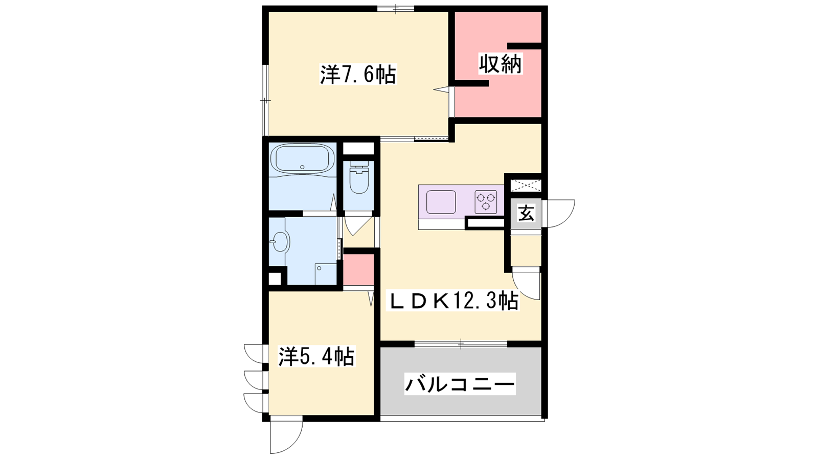 - LDK12.3帖、洋室7.6帖、洋室5.4帖