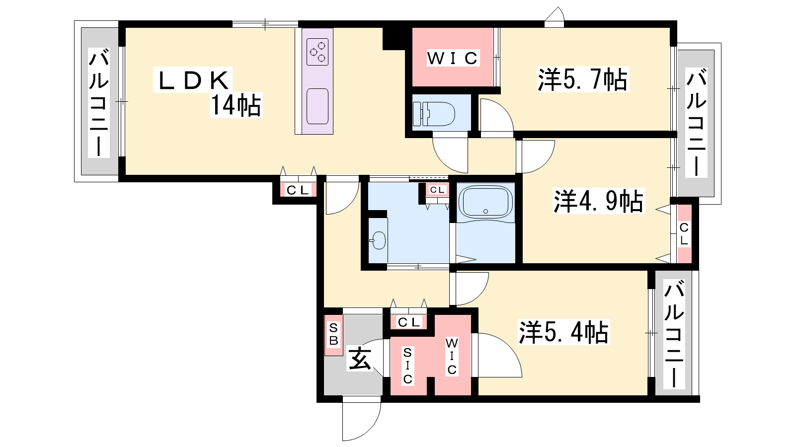 - LDK14帖、洋室5.7帖、洋室5.4帖、洋室4.8帖