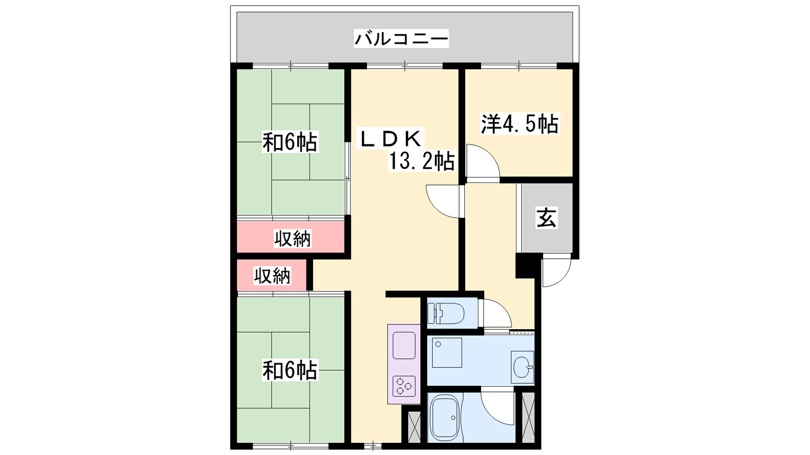 - LDK13.2帖、洋室4.5帖、和室6帖、和室6帖
