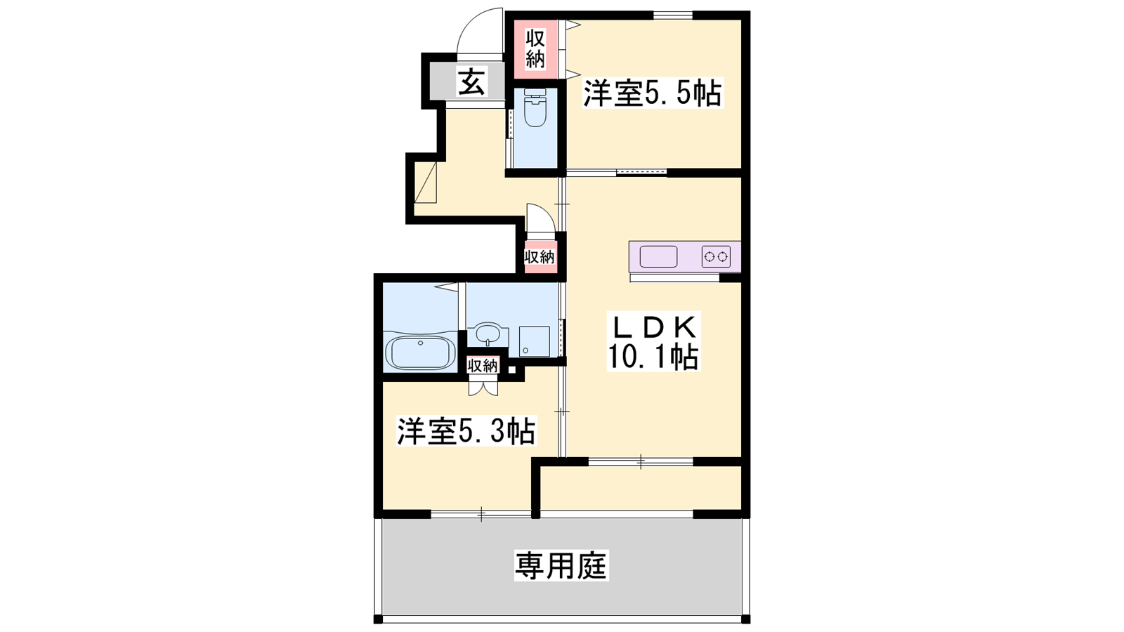 - LDK10.1帖、洋室5.5帖、洋室5.3帖
