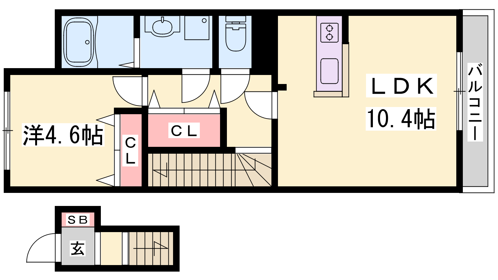 - LDK10.4帖、洋室4.6帖