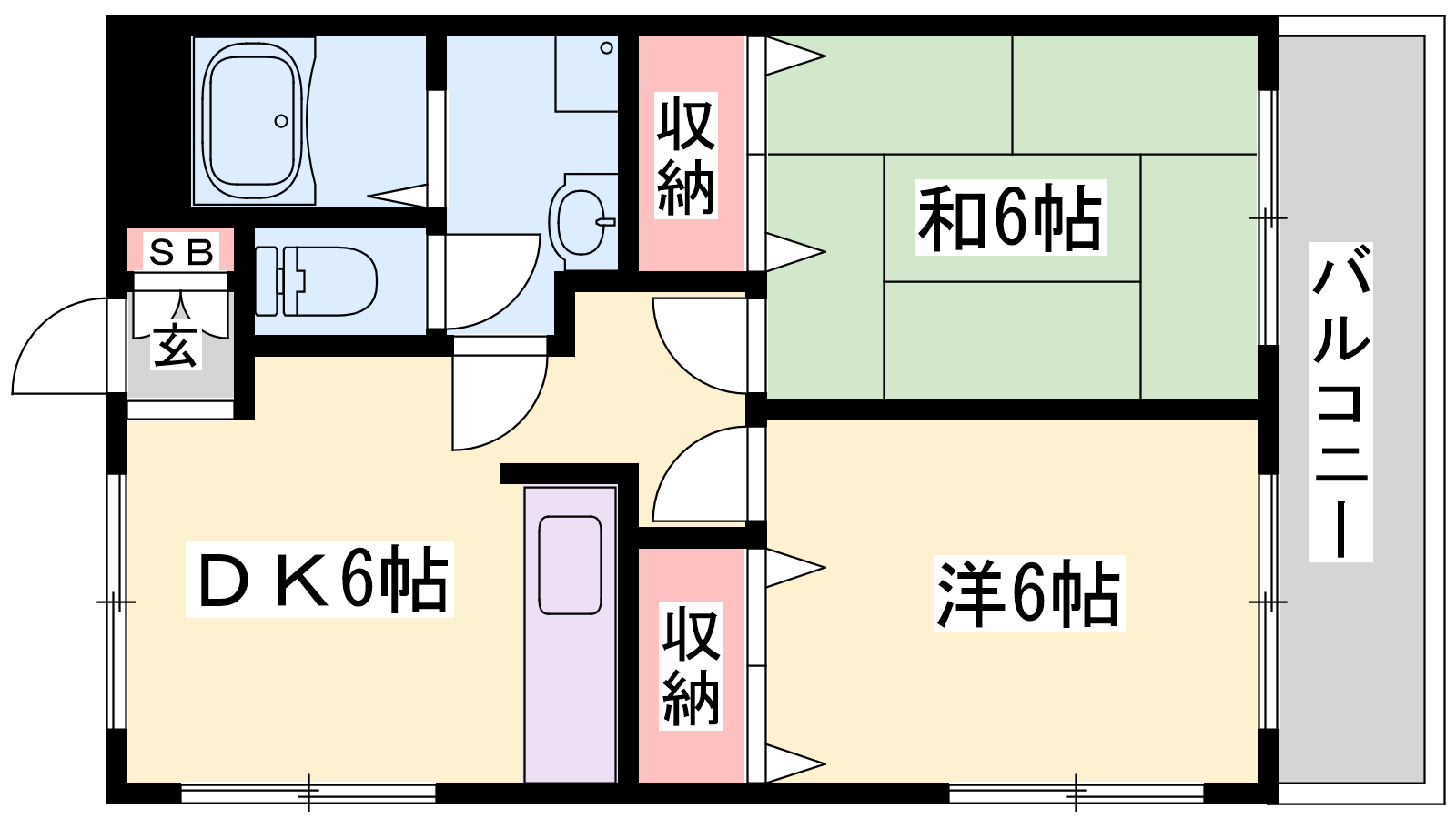 - DK6帖、洋室6帖、和室6帖