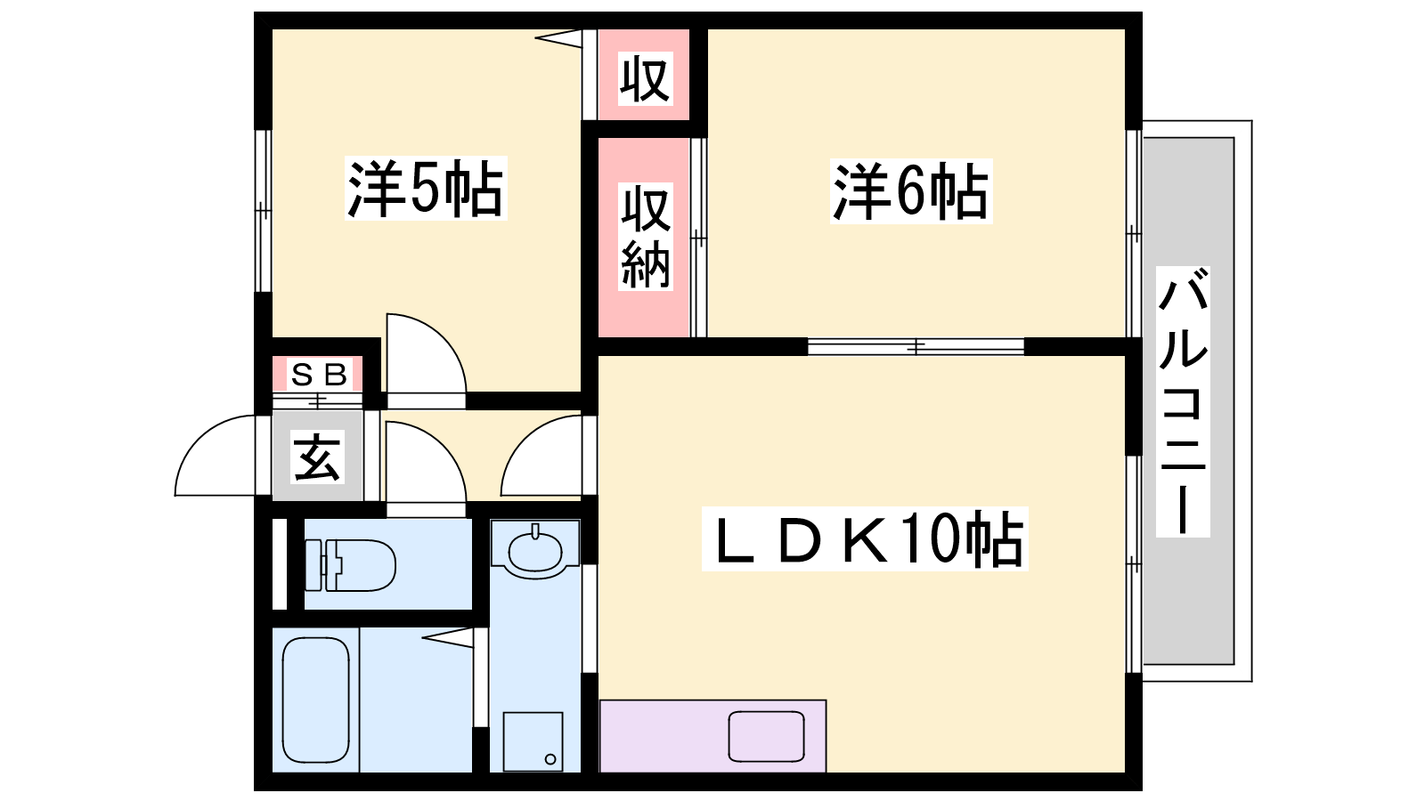 - LDK10帖、洋室6帖、洋室5帖