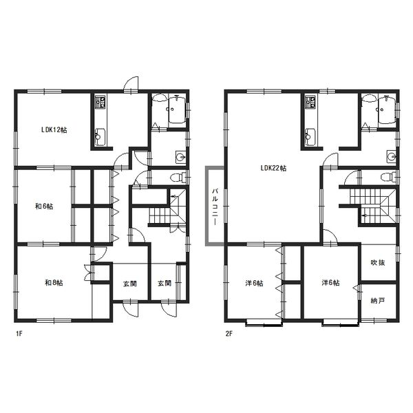 - LDK22帖、LDK12帖、洋室6帖、洋室6帖、和室8帖、和室6帖