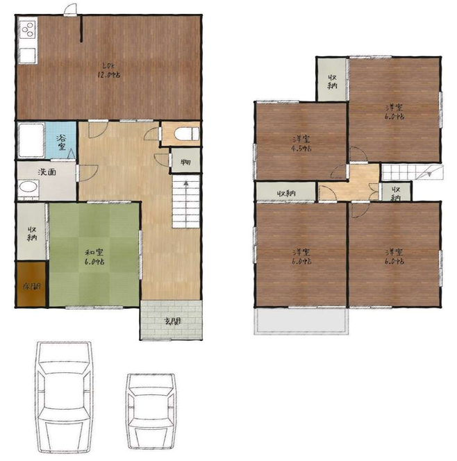 - LDK12帖、洋室6帖、洋室6帖、洋室6帖、洋室6帖、和室6帖
