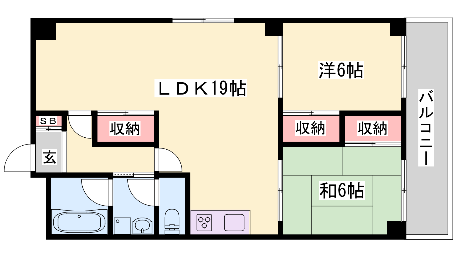 - LDK19帖、洋室5.9帖、和室5.9帖