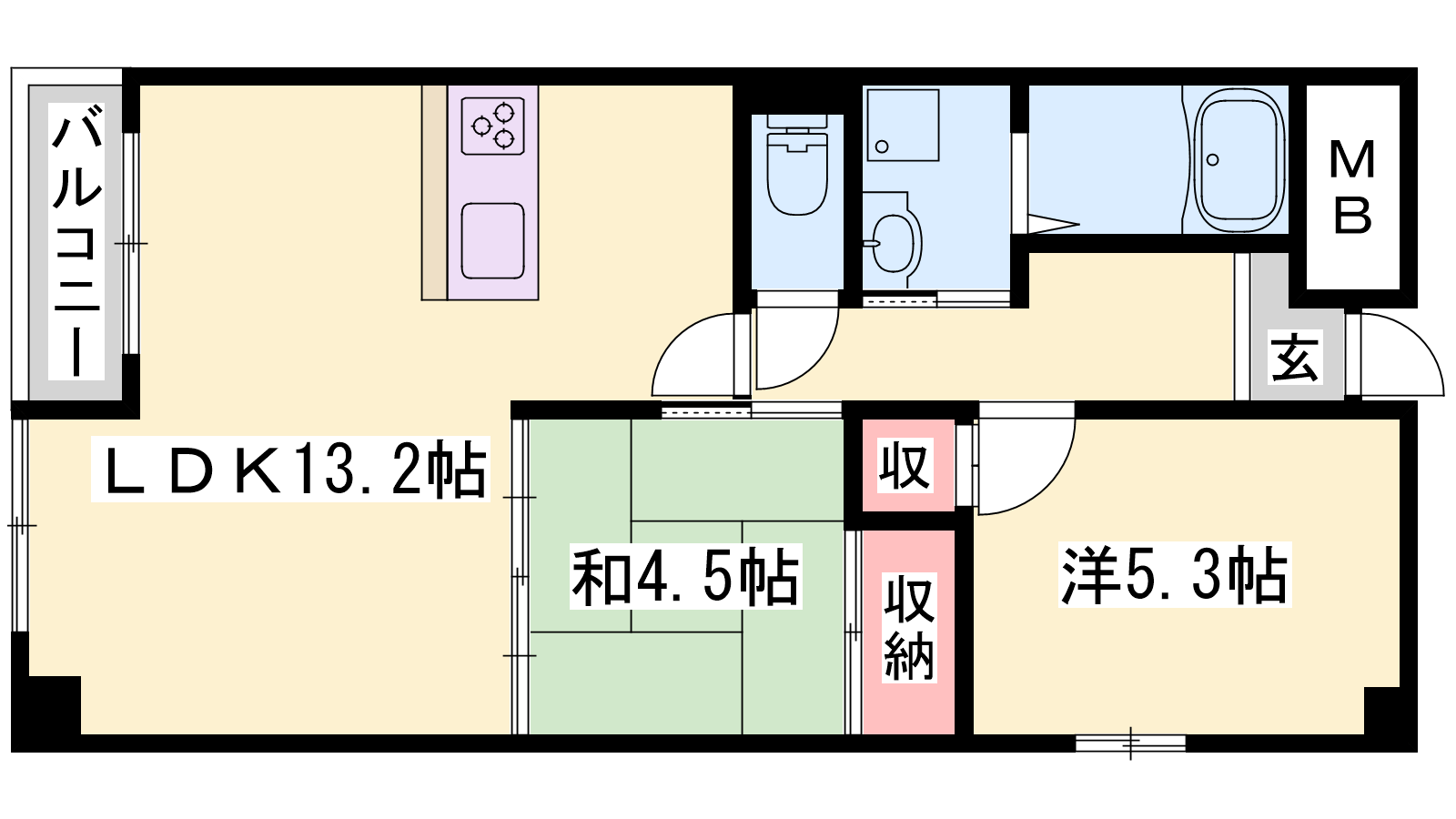 - LDK13.2帖、洋室5.3帖、洋室4.5帖