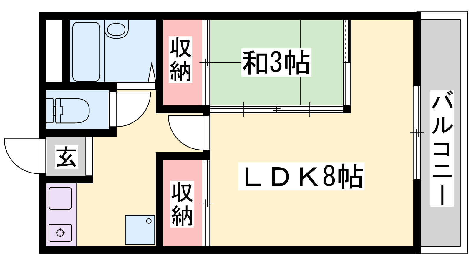 - L8帖、洋室3帖