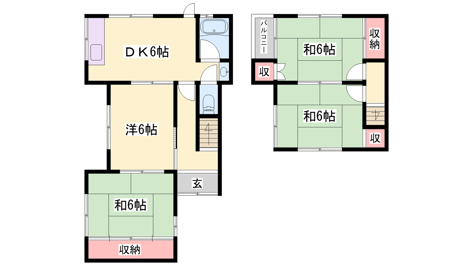 - DK6帖、洋室6帖、和室6帖、和室6帖、和室6帖