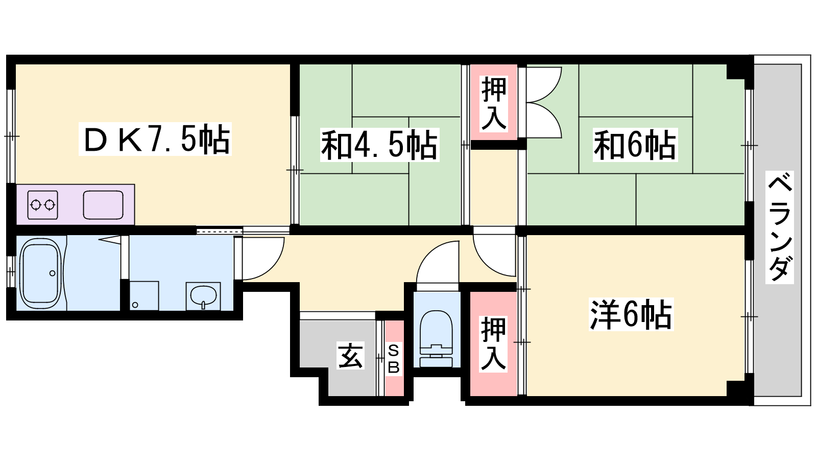 - DK7.5帖、和室6帖、和室6帖、和室4.5帖
