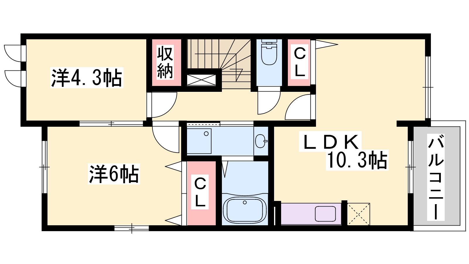 - LDK10.3帖、洋室6帖、洋室4.3帖