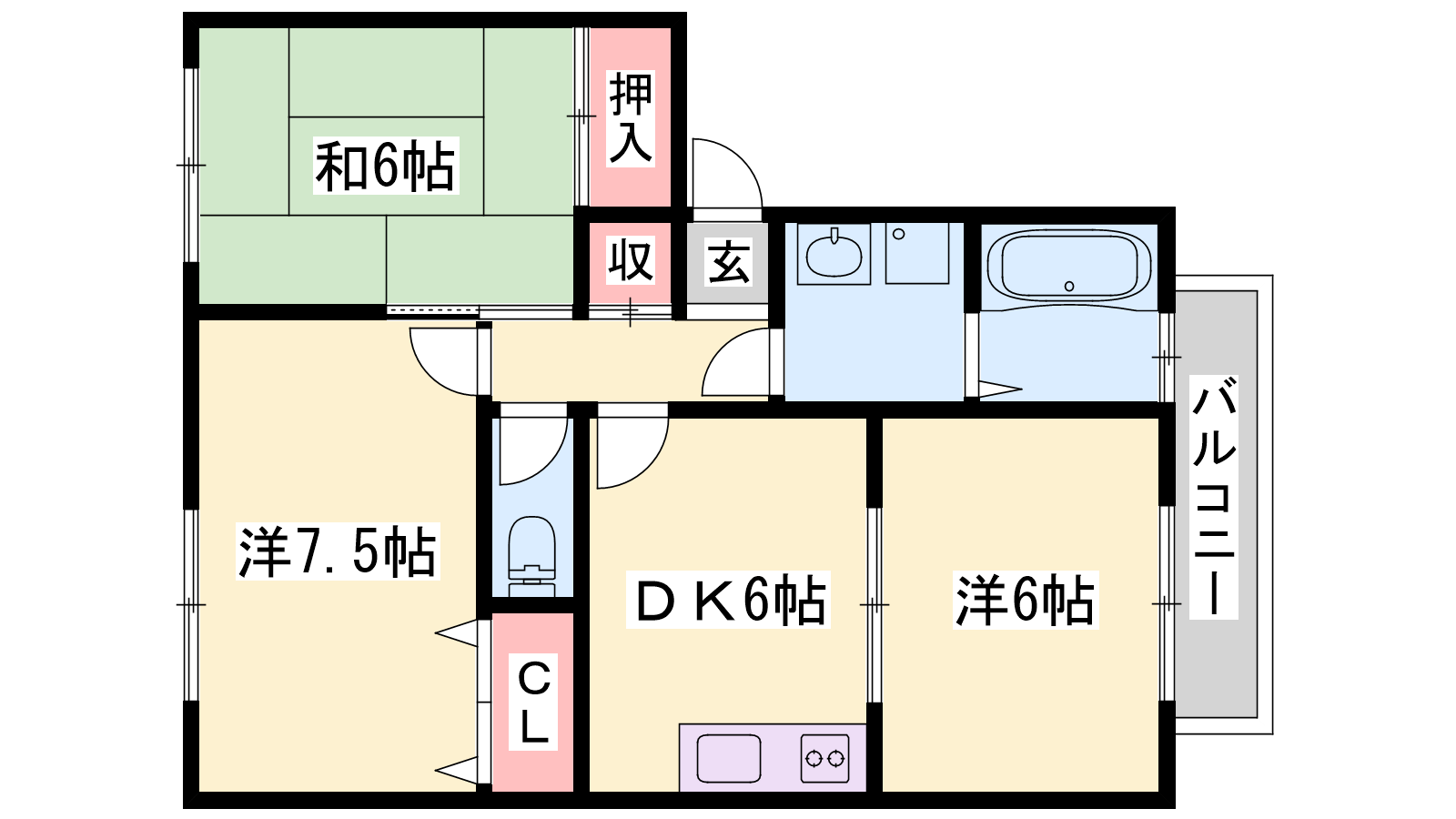 - DK6帖、洋室7.5帖、洋室6帖、和室6帖