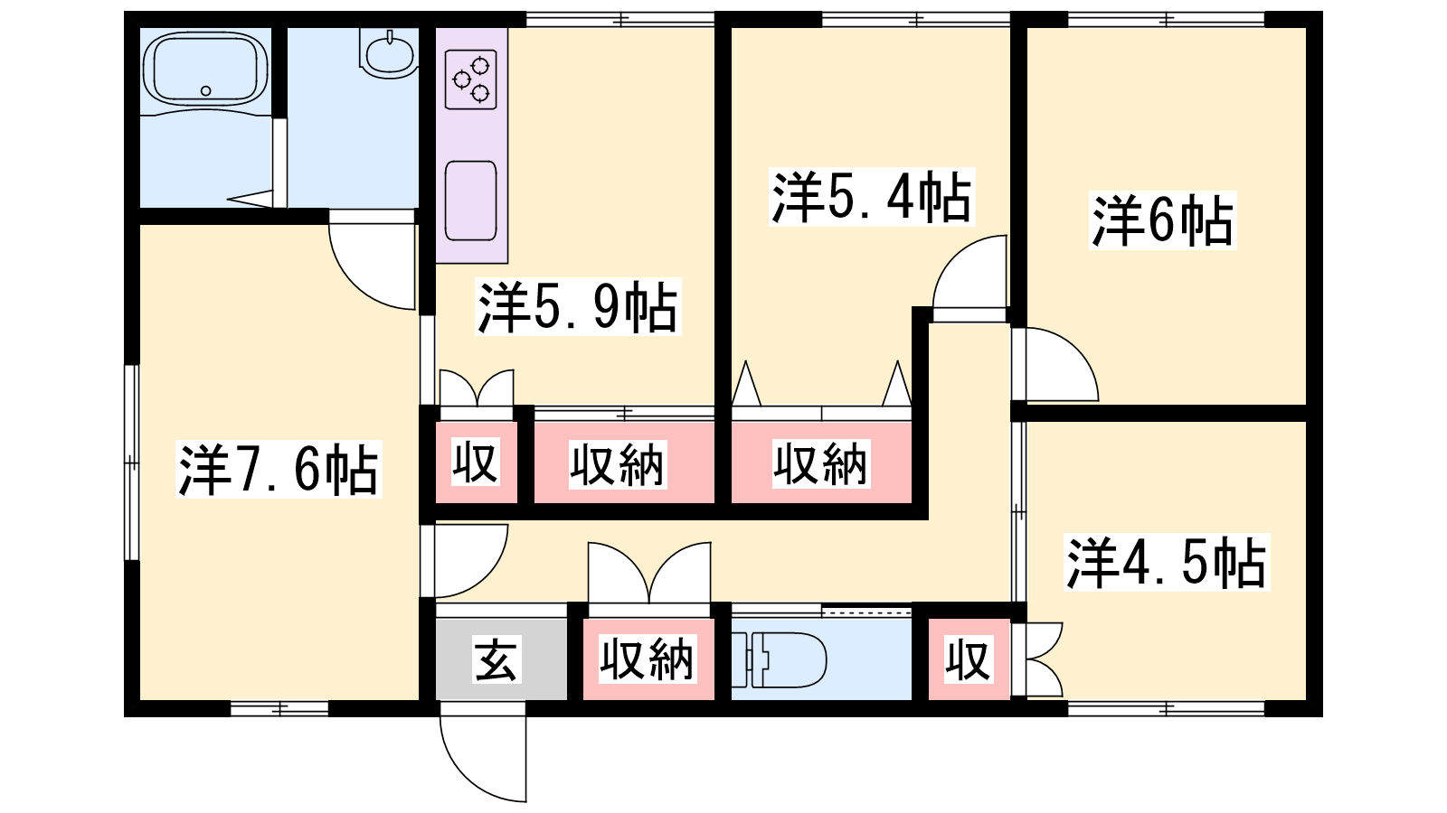 - LDK13.5帖、洋室6帖、洋室5.4帖、洋室4.5帖
