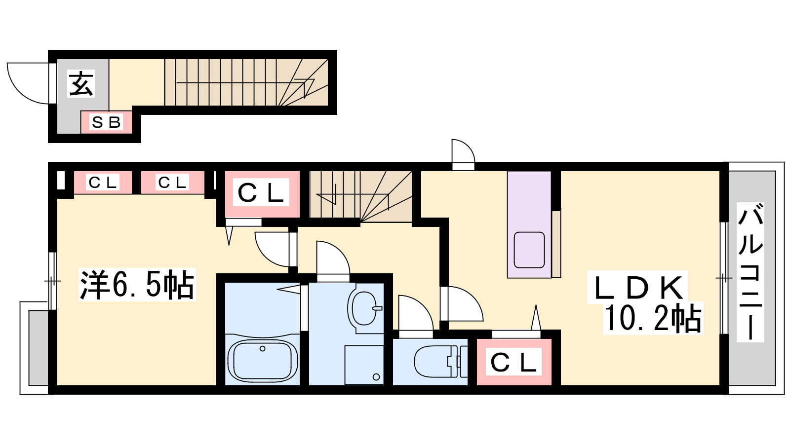 - 洋室10.2帖、洋室6.5帖