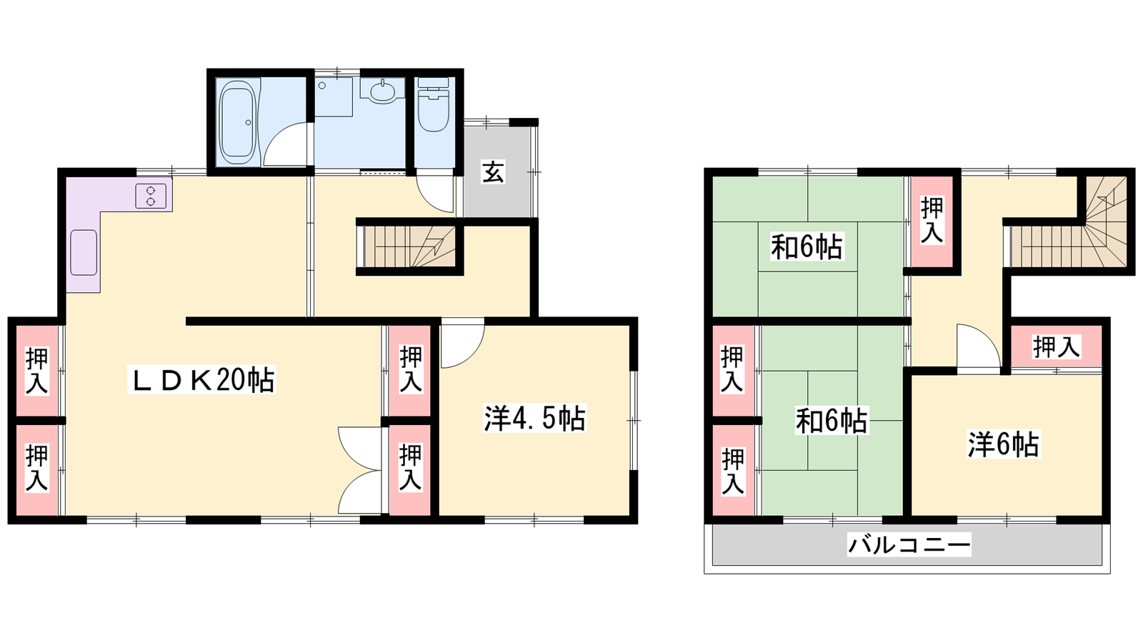 - LDK20帖、洋室4.5帖、洋室6帖、和室6帖、和室6帖