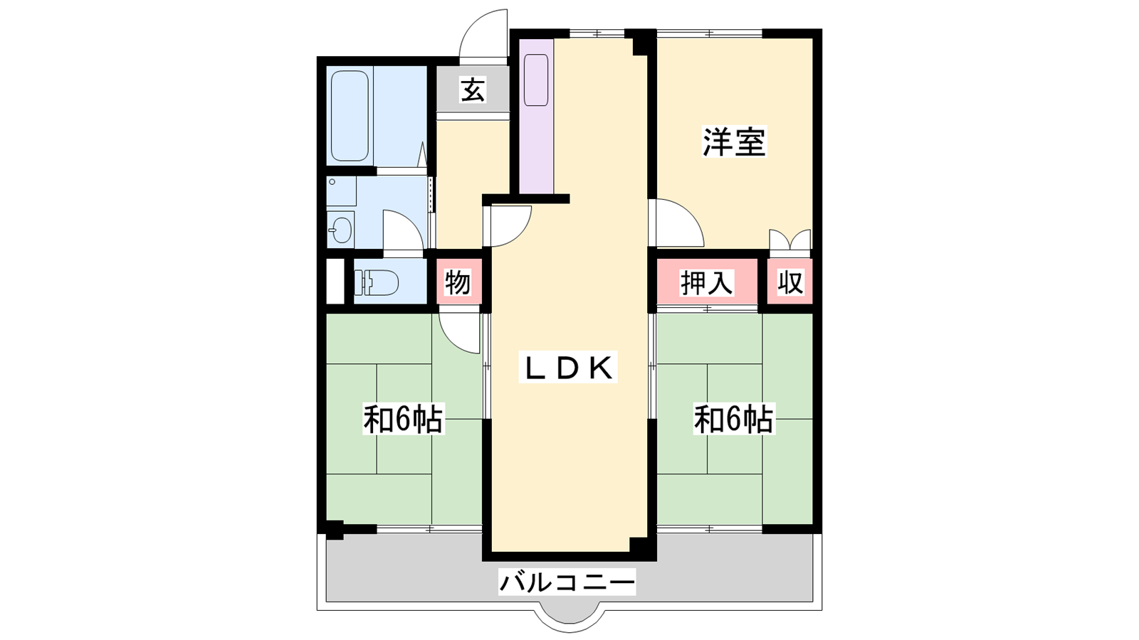 - 洋室6帖、和室6帖、和室6帖