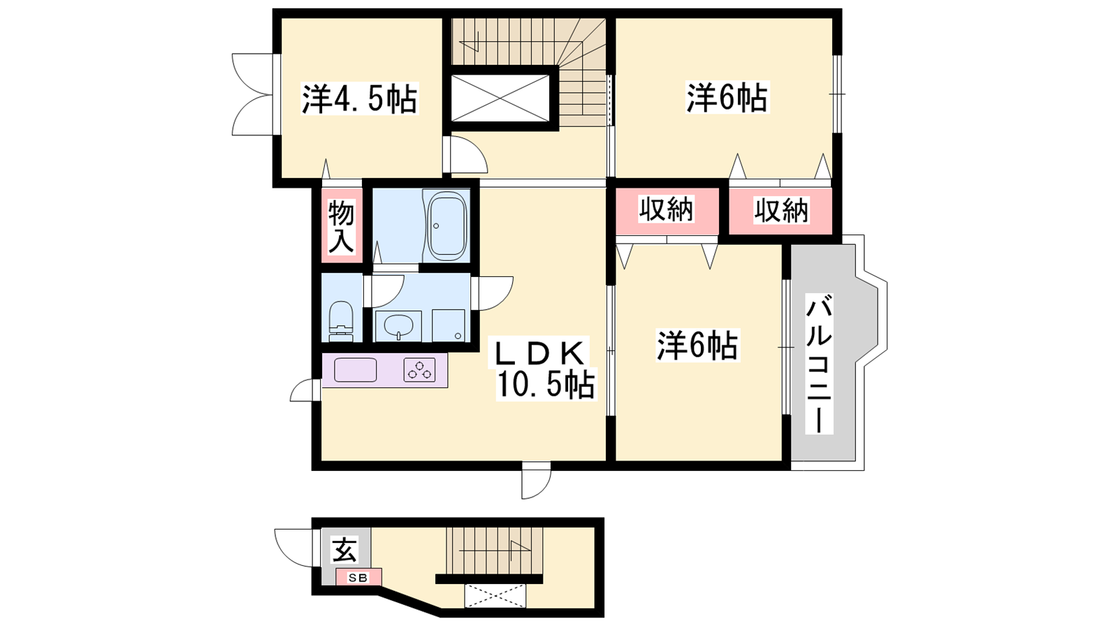 - LDK10.5帖、洋室6帖、洋室6帖、洋室4.5帖