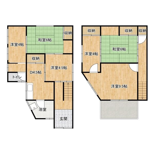 - LDK9.5帖、洋室9.5帖、洋室4.5帖、洋室4帖、和室6帖、和室6帖
