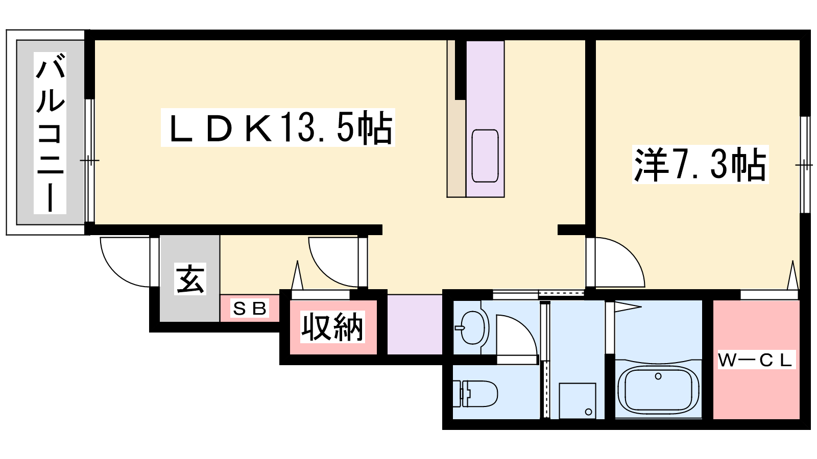 - LDK13.5帖、洋室7.3帖
