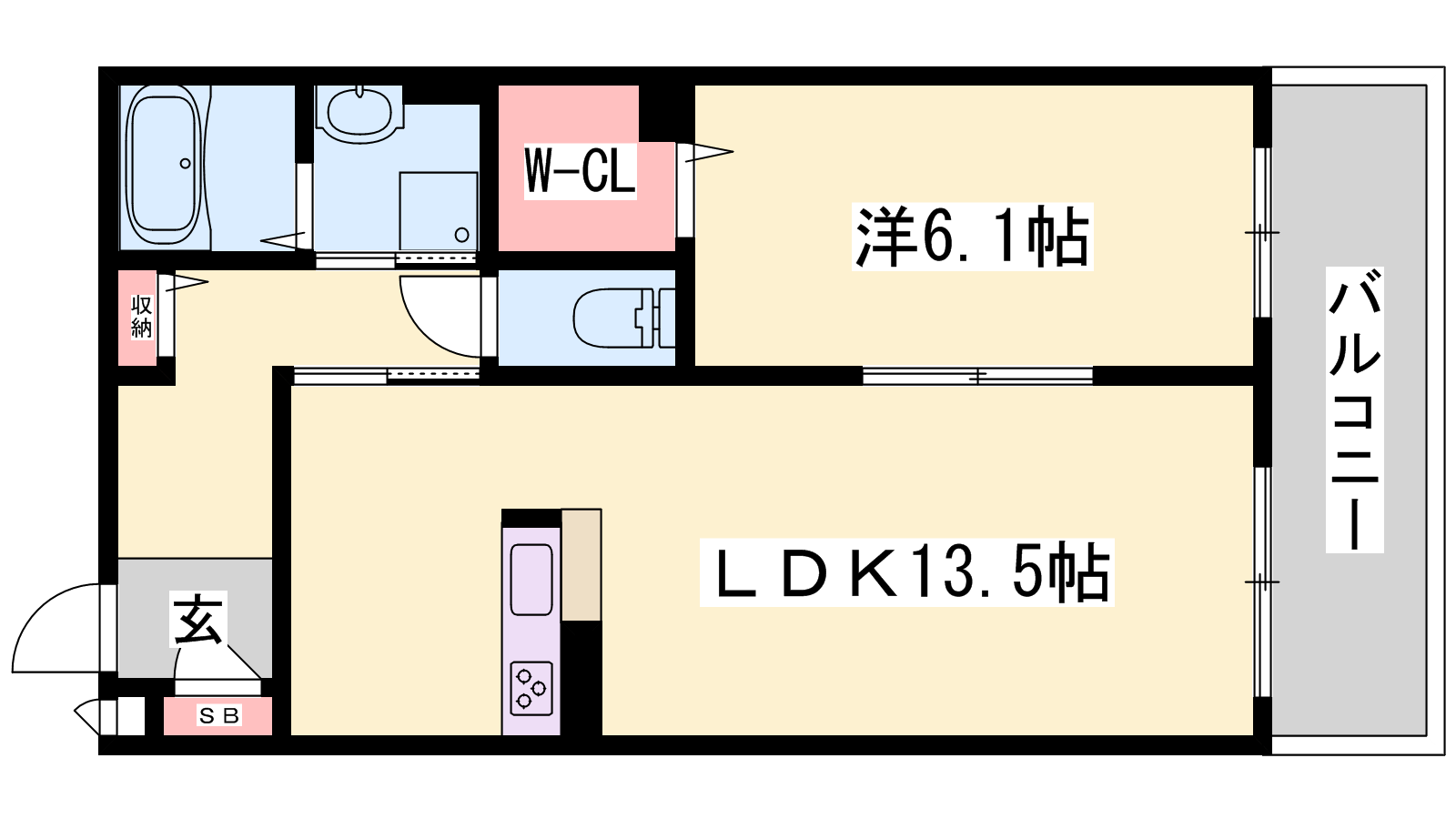 - LDK13.5帖、洋室6.1帖