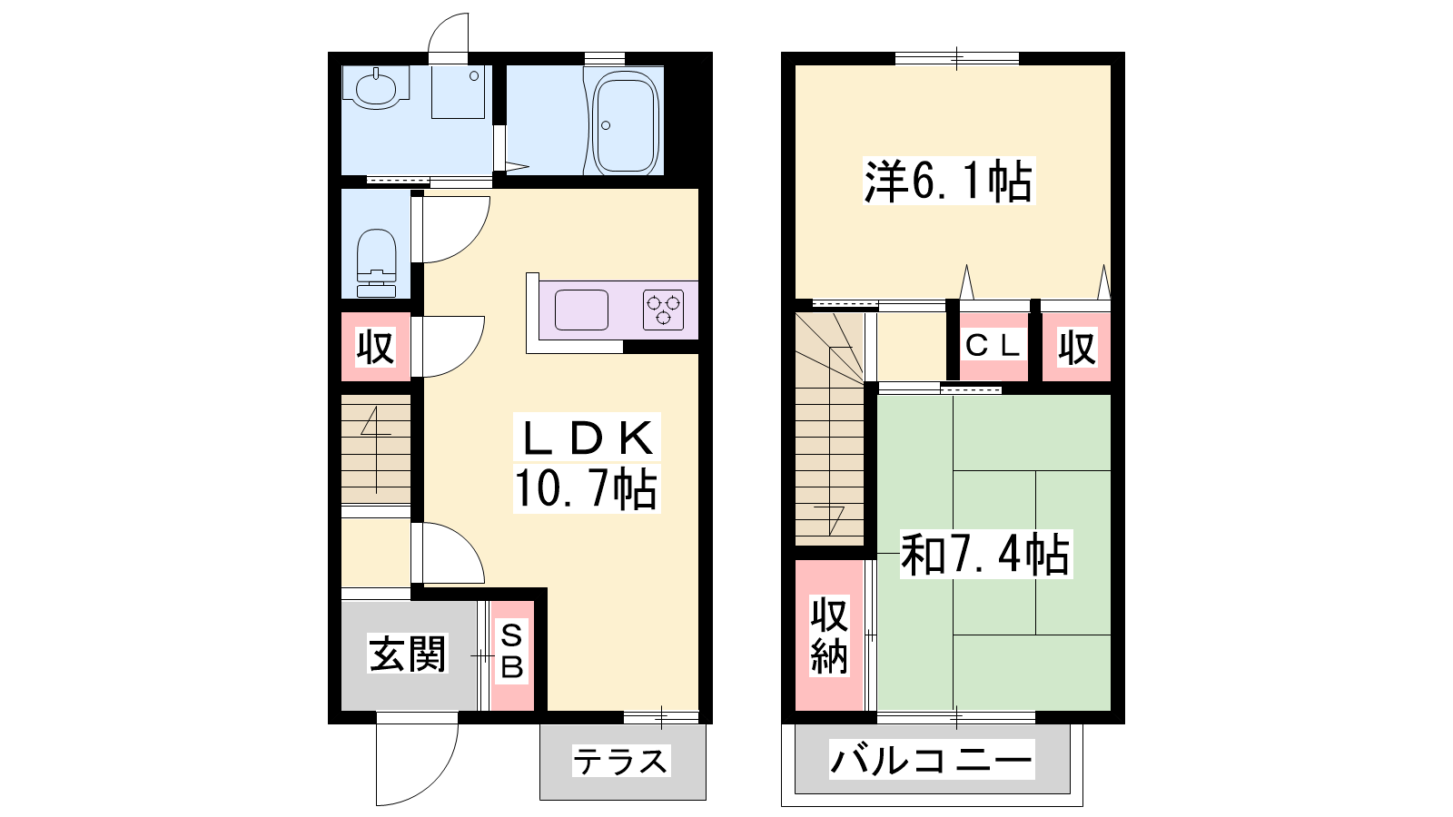 - LDK10.7帖、洋室6.4帖、和室7.4帖