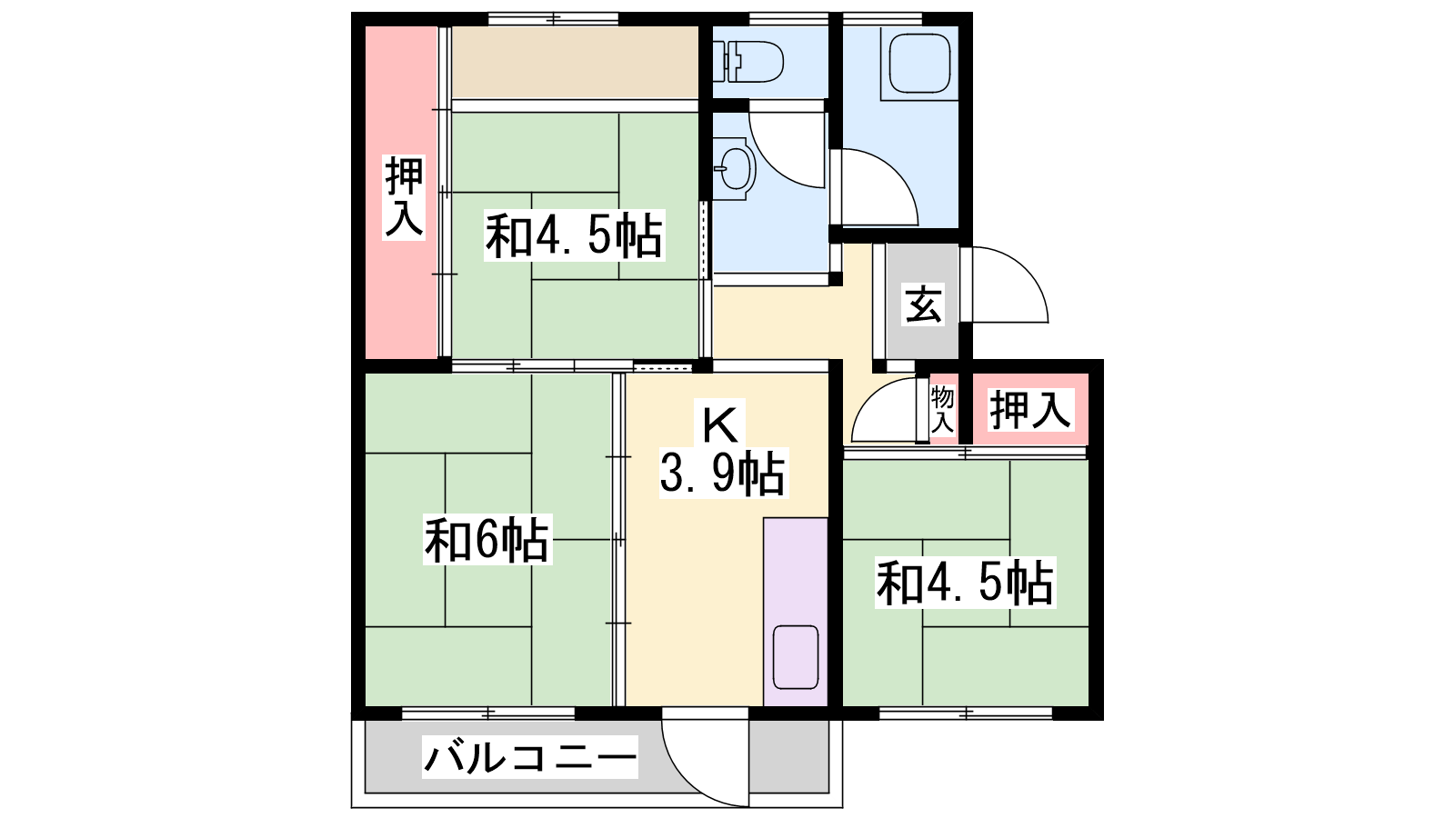 - K3.9帖、和室6帖、和室4.5帖、和室4.5帖