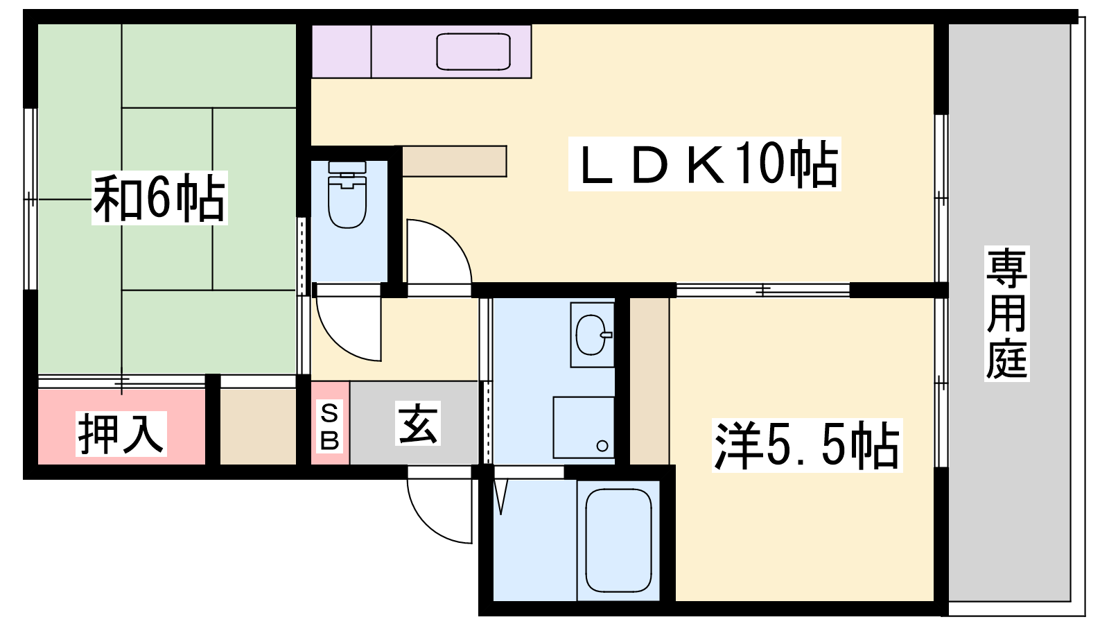 - LDK10帖、洋室5.5帖、和室6帖