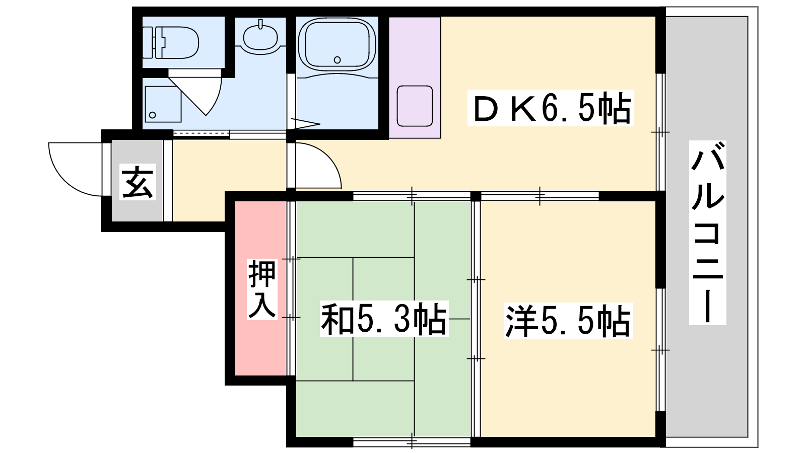 - DK6.5帖、洋室5.5帖、和室5.3帖