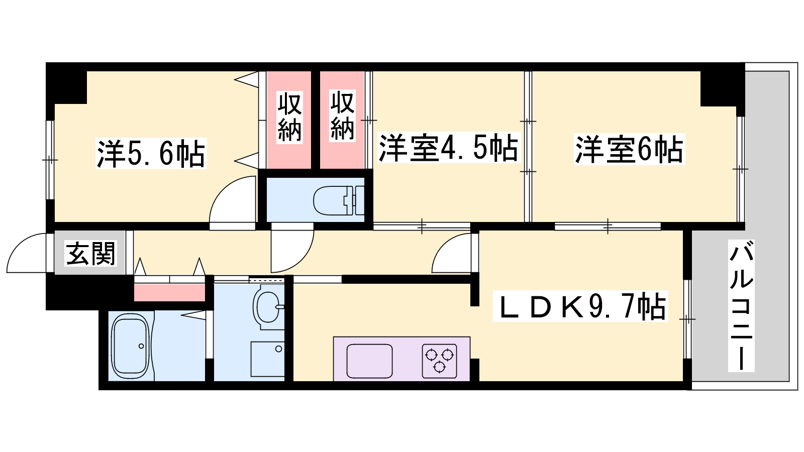 - LDK10.5帖、洋室5.6帖、和室5.7帖、和室4.5帖