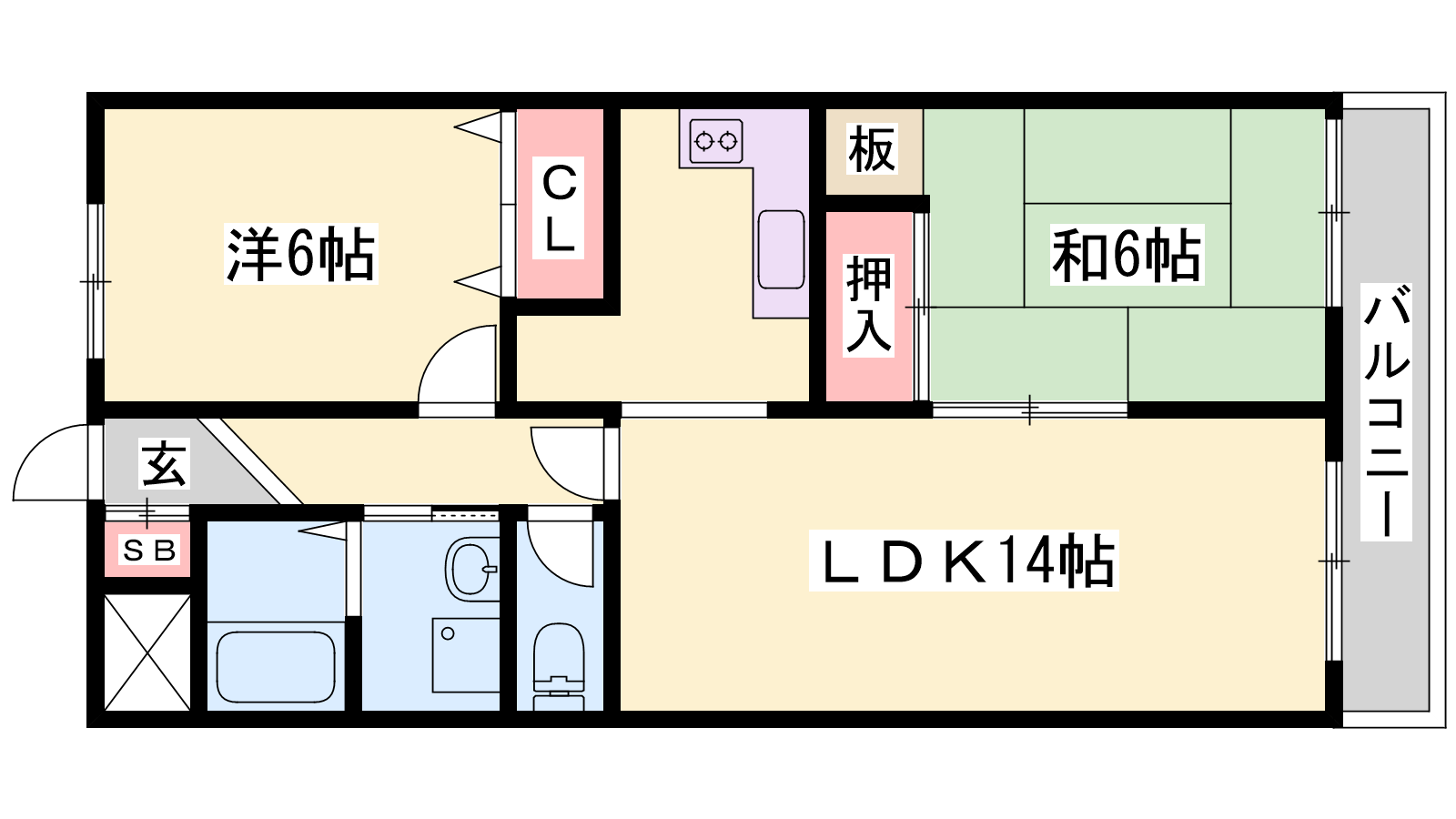 - LDK14帖、洋室6帖、和室6帖