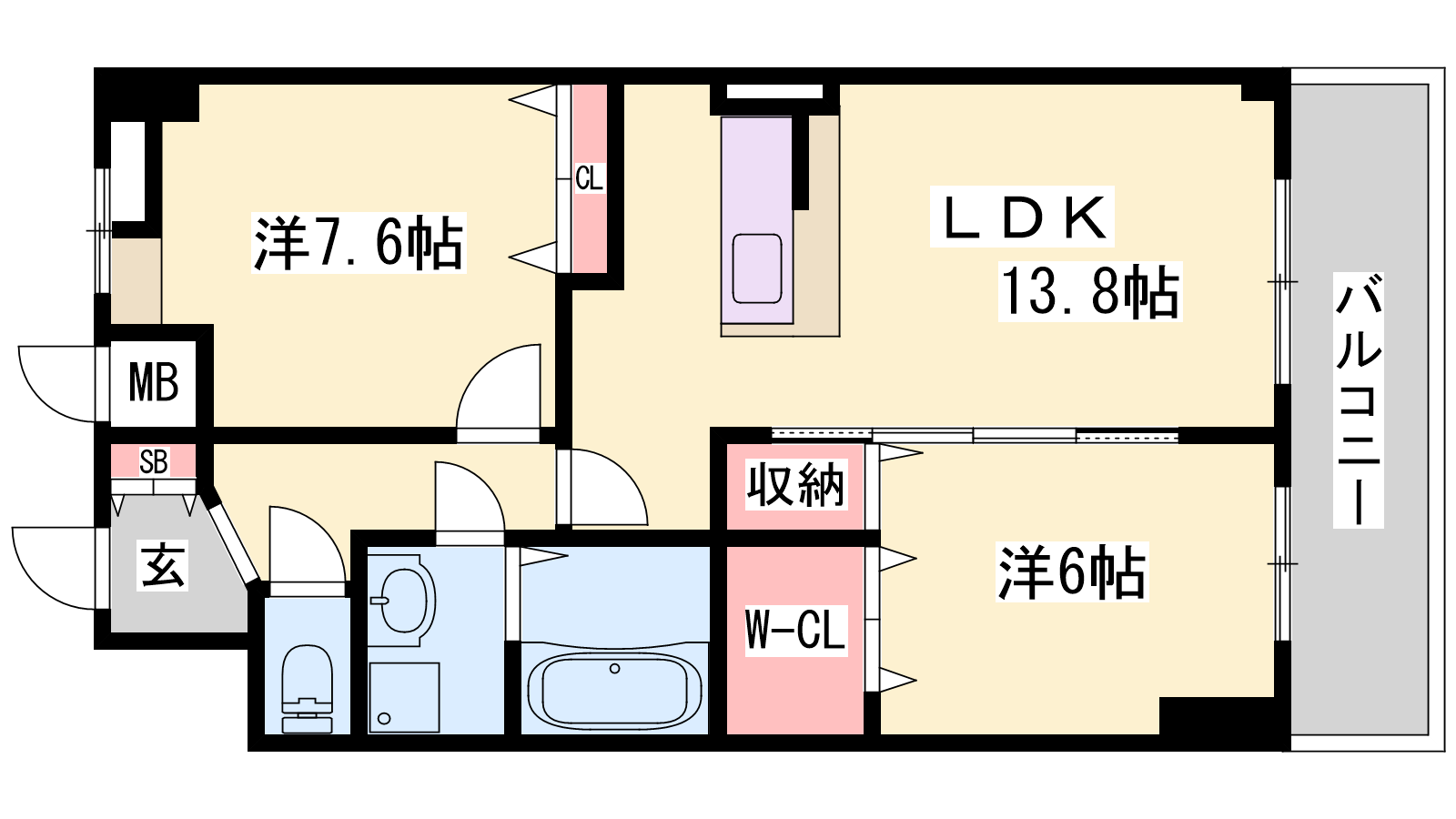 - LDK13.8帖、洋室6帖、洋室7.6帖