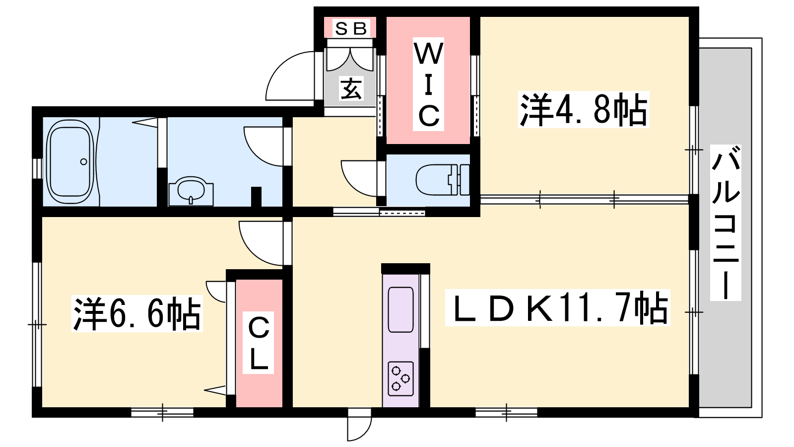 - LDK11.7帖、洋室6.6帖、洋室4.8帖