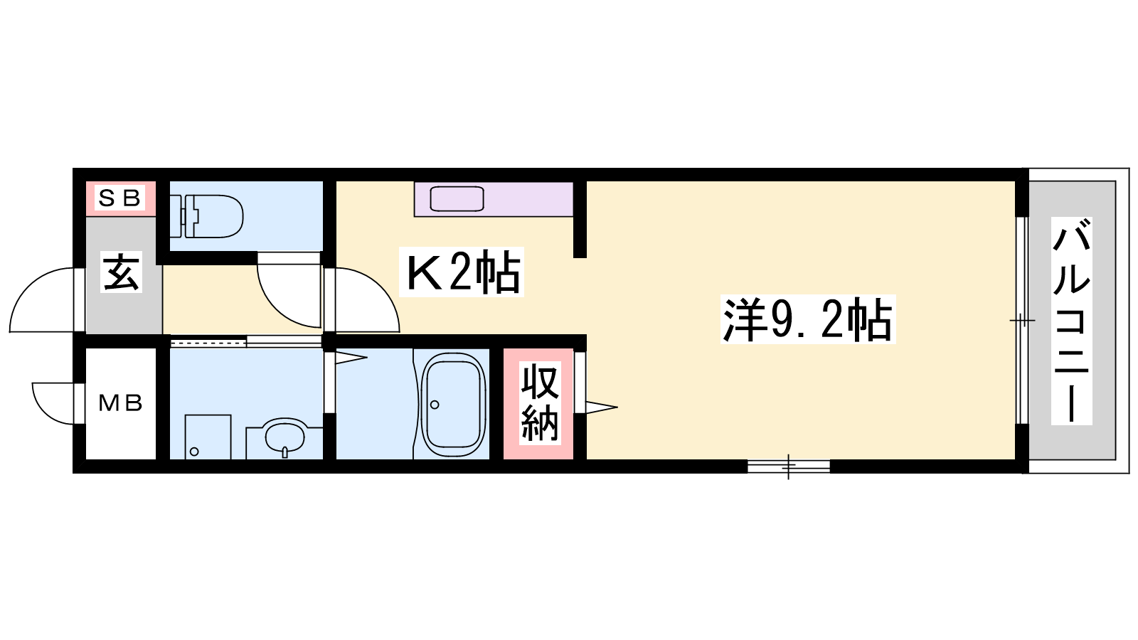 - K2帖、洋室9.2帖