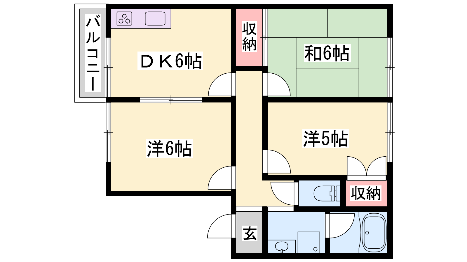 - DK6帖、洋室6帖、洋室5帖、和室6帖