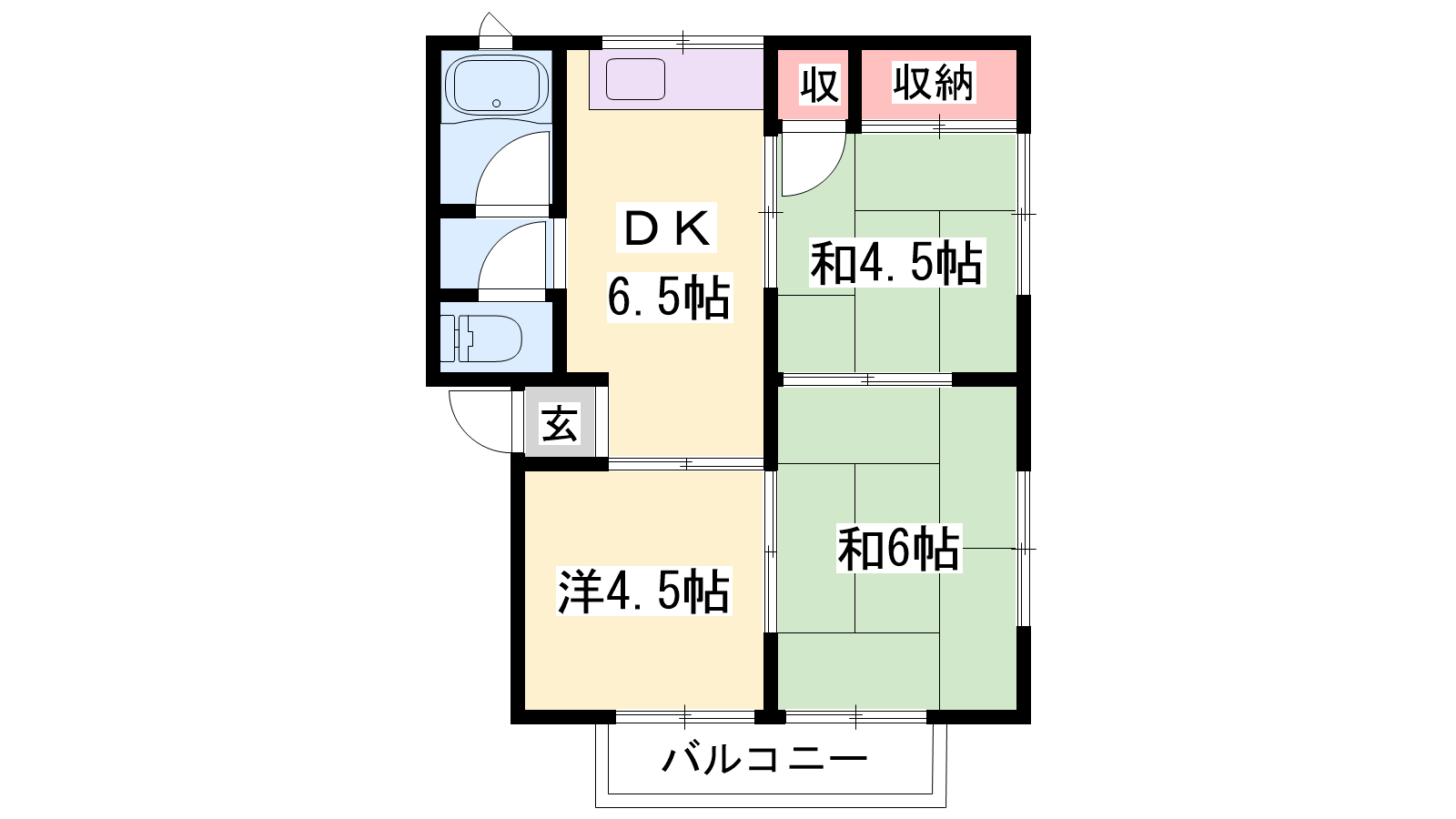 - LDK6.5帖、洋室4.5帖、和室6帖、和室4.5帖