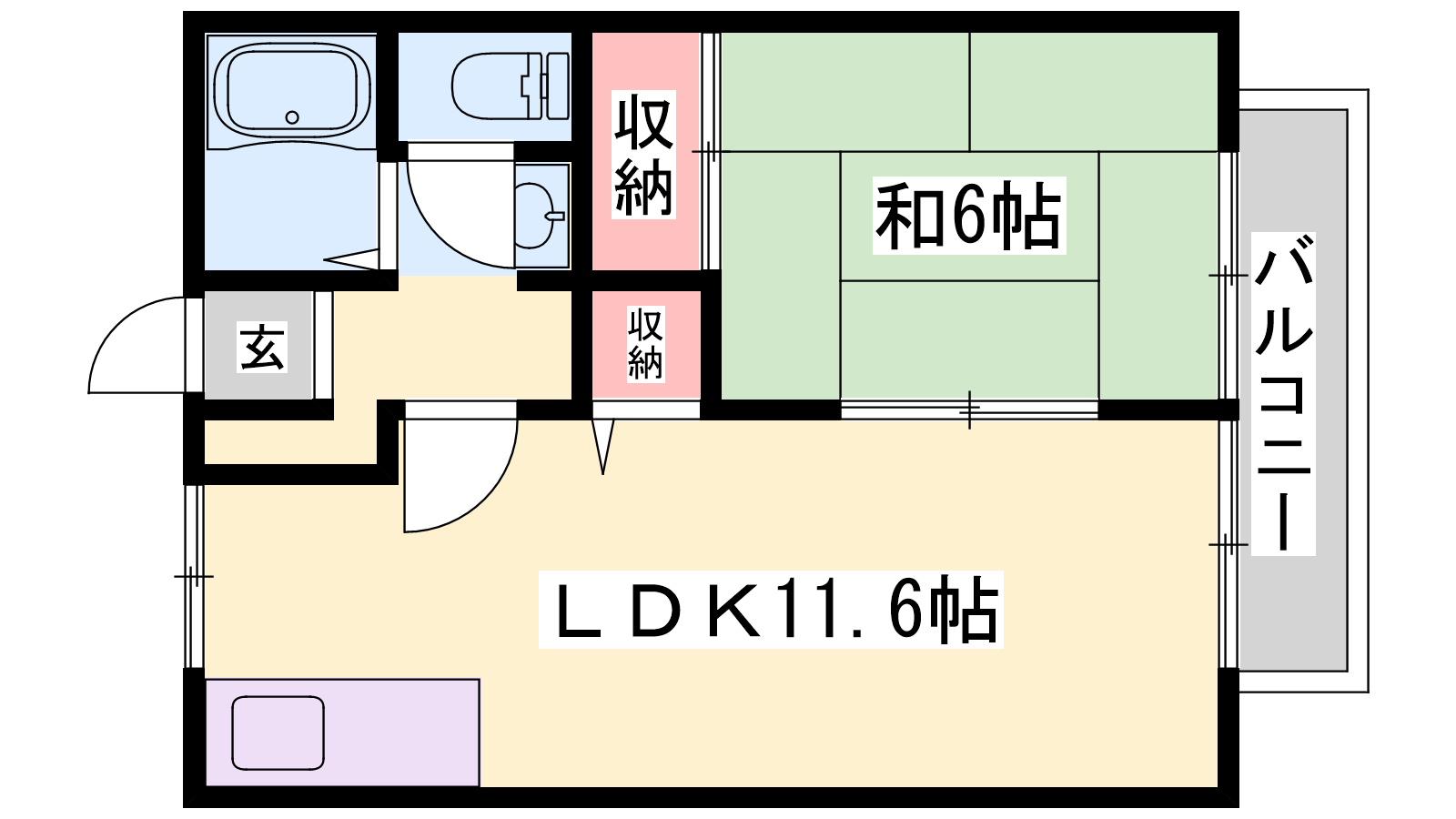 - LDK11.6帖、和室6帖