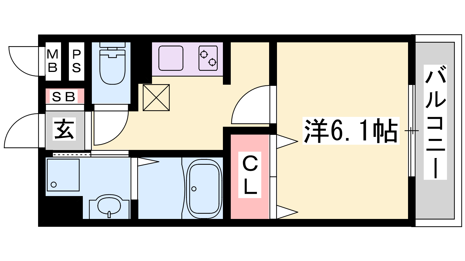 - K3.9帖、洋室6.1帖
