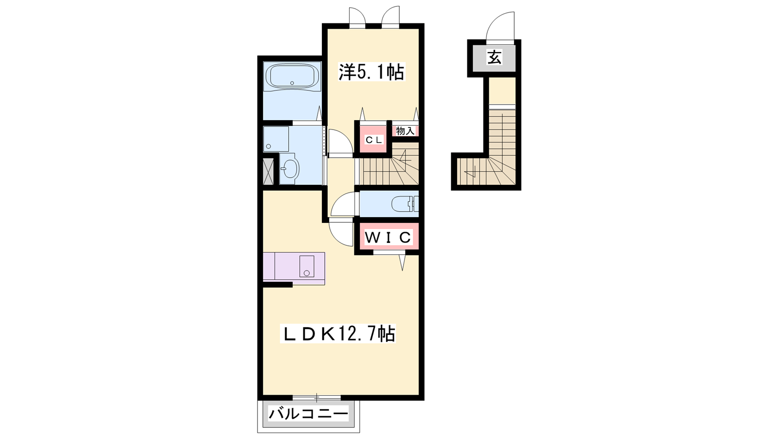 - LDK12.7帖、洋室5.1帖