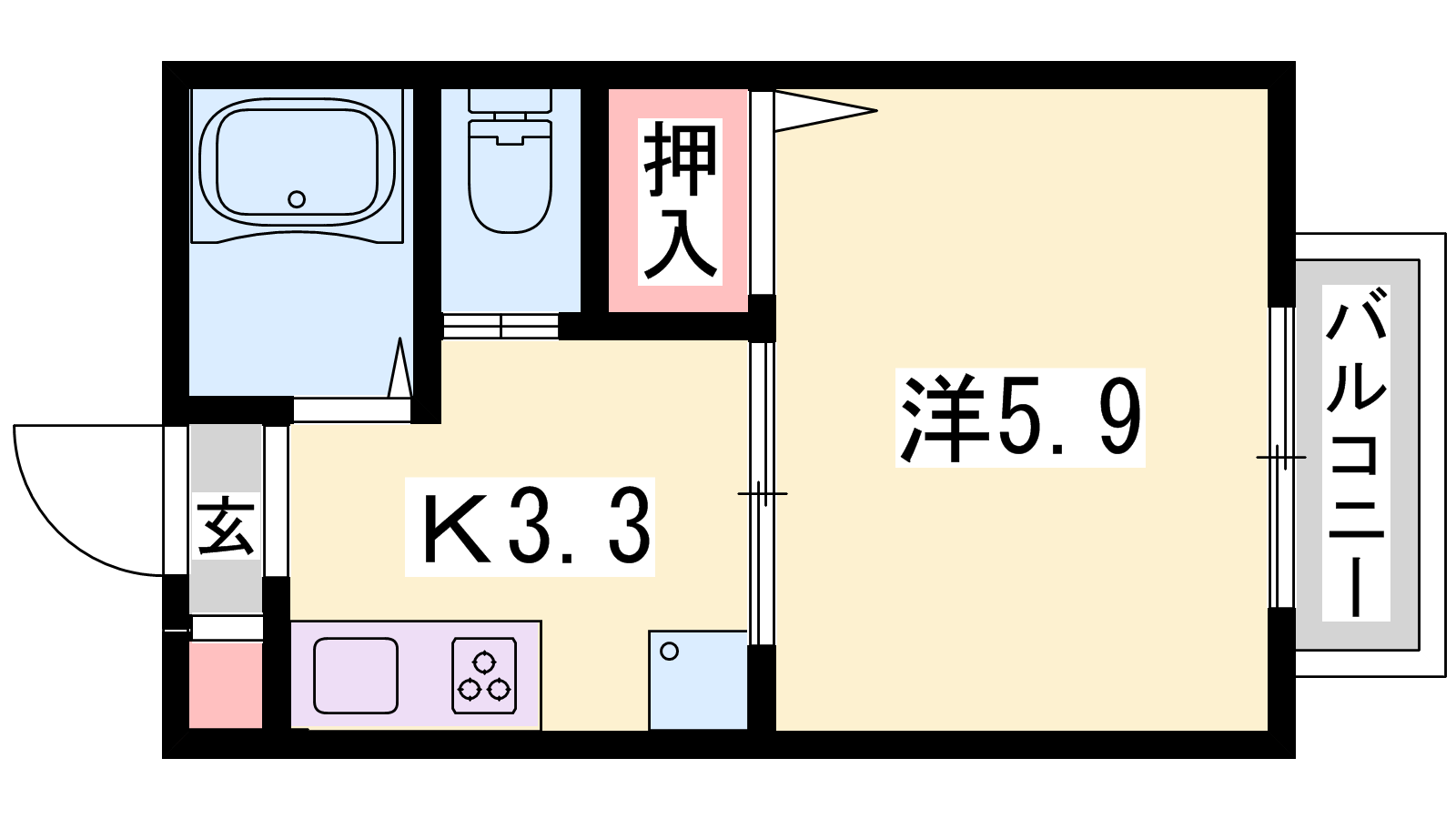- K3.3帖、洋室5.9帖
