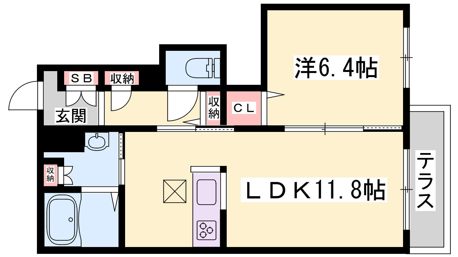 - LDK11.8帖、洋室6.4帖